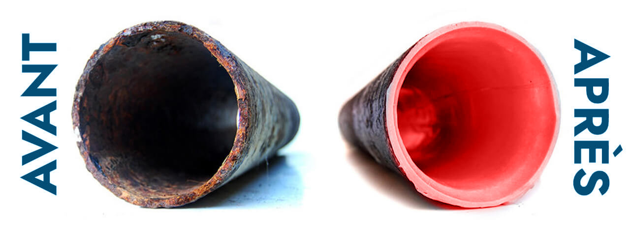 En chemisant l'intérieur des tuyaux avec une technique et des matériaux adaptés, l'eau est isolée de l'ancien réseau. Très résistant, le nouveau réseau a une durée de vie superieure à 20 ans